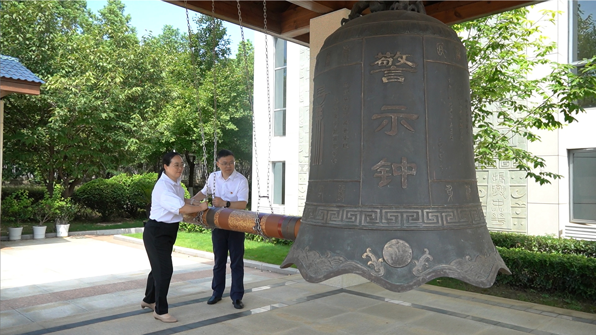 廉政文化廣場上,全體參加人員莊嚴(yán)肅立,支部書記、董事長張啟駿和文旅咨詢公司副總經(jīng)理王茜一同敲響了廉政警鐘,警鐘長鳴、聲聲入耳,警示每名黨員干部要立足崗位、守住初心,始終做到明紀(jì)守法、自律自省,知敬畏、存戒懼、守底線,永葆清廉本色。