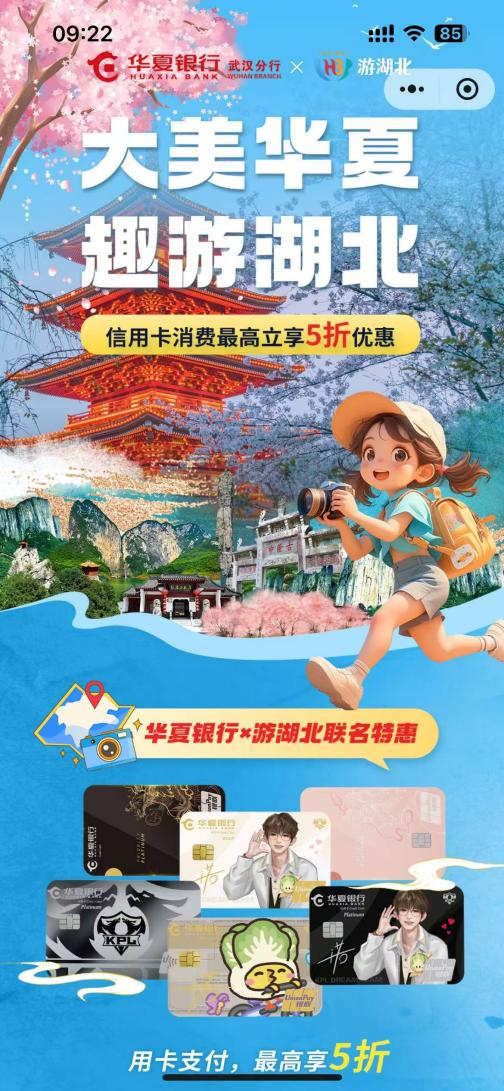在數(shù)字化消費(fèi)場(chǎng)景深度融合的背景下,雙方構(gòu)建“三重惠民”服務(wù)體系:一是消費(fèi)立減,用戶通過“游湖北”微信小程序預(yù)訂景區(qū)門票、精品酒店、特色年卡及品質(zhì)跟團(tuán)游產(chǎn)品時(shí),使用微信支付(綁定華夏銀行信用卡),可享最高5折優(yōu)惠,單筆立減50元封頂;二是場(chǎng)景互通,整合省內(nèi)熱門景區(qū)、優(yōu)質(zhì)酒店資源形成消費(fèi)矩陣;三是長(zhǎng)效賦能,通過“月月享優(yōu)惠”機(jī)制(每自然月限享1次)持續(xù)激發(fā)消費(fèi)活力。